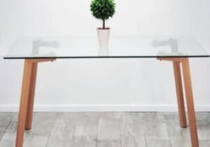 Mesa tap de vidrio 140 x 80 cm patas cromadas