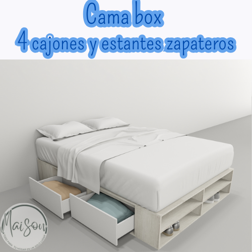 Cama box 4 cajones y estantes zapateros