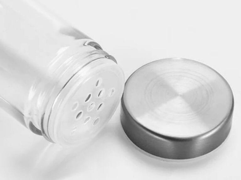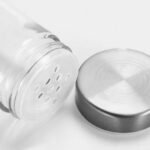 Condimentero redondo de acero inoxidable y vidrio