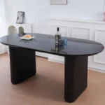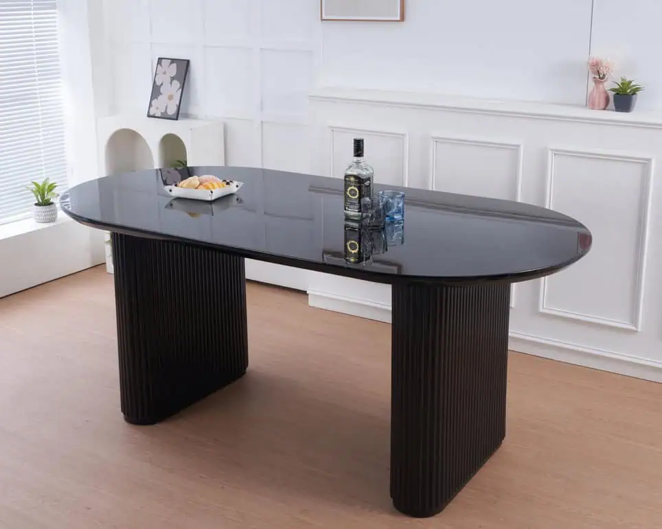 Mesa  de diseño ovalada de diseño de madera, laqueada, terminación brillosa . Articulo importado de calidad premium. Producto para armar. Incluye todo lo necesario para su fácil armado . Medidas 160x90x76cm