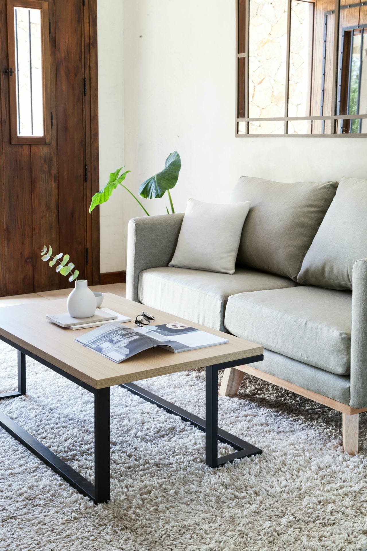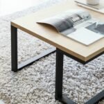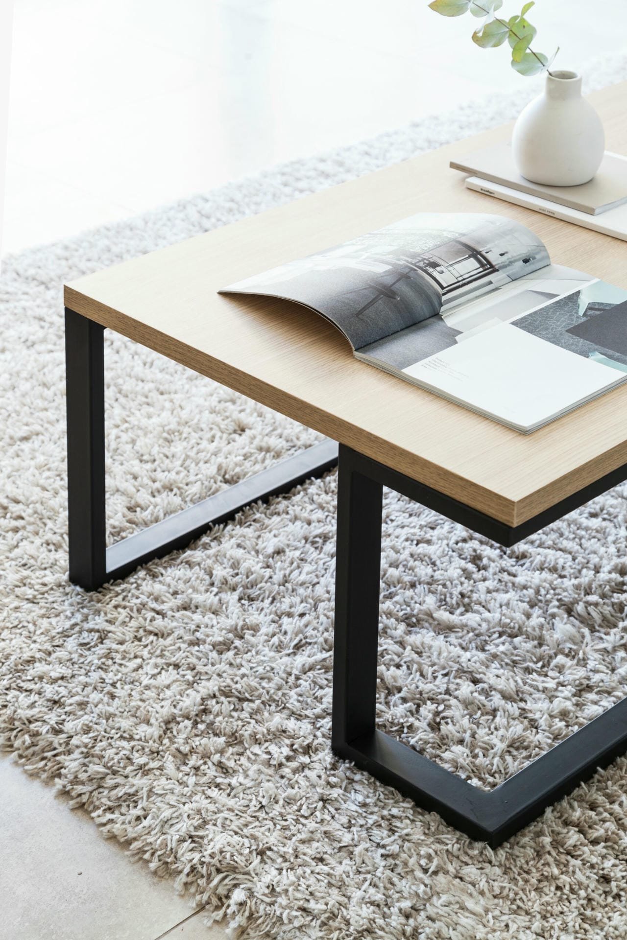 Mesa ratona Nilo fabricada caños 40×20 con pintura epoxi negro mate o blanco brillante. Tapa en roble americano.
