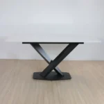 mesa rectangular de diseño,hecha en madera de Caucho de 36 mm ( es una madera dura de color claro obtenida del árbol de caucho,  Se utiliza comúnmente en carpintería y para fabricar muebles debido a su durabilidad)