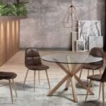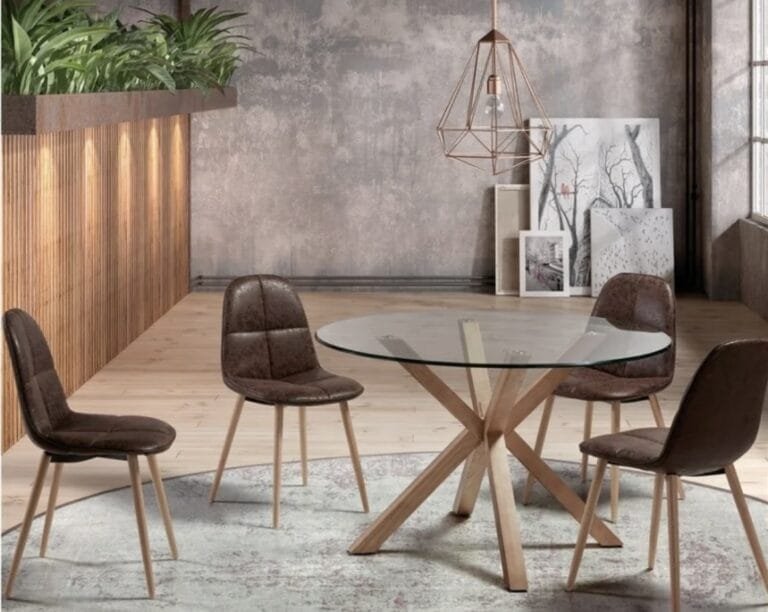 Mesa de diseño hecha en tapa vidrio de 10 mm de espesor , de patas metálicas con pintura apoxi simil madera . Articulo importado de calidad premium. Producto para armar. Incluye todo lo necesario para su armado . Medidas 110x75cm