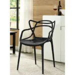 Silla de comedor master negra , Una sola pieza , no requiere de armado , plástica fabricada con polipropileno . Resiste hasta 150 kg de uso diario .Medidas : Ancho 53 cm , Alto 84 cm , Profundidad 56 cm , Altura asiento al piso 50 cm .