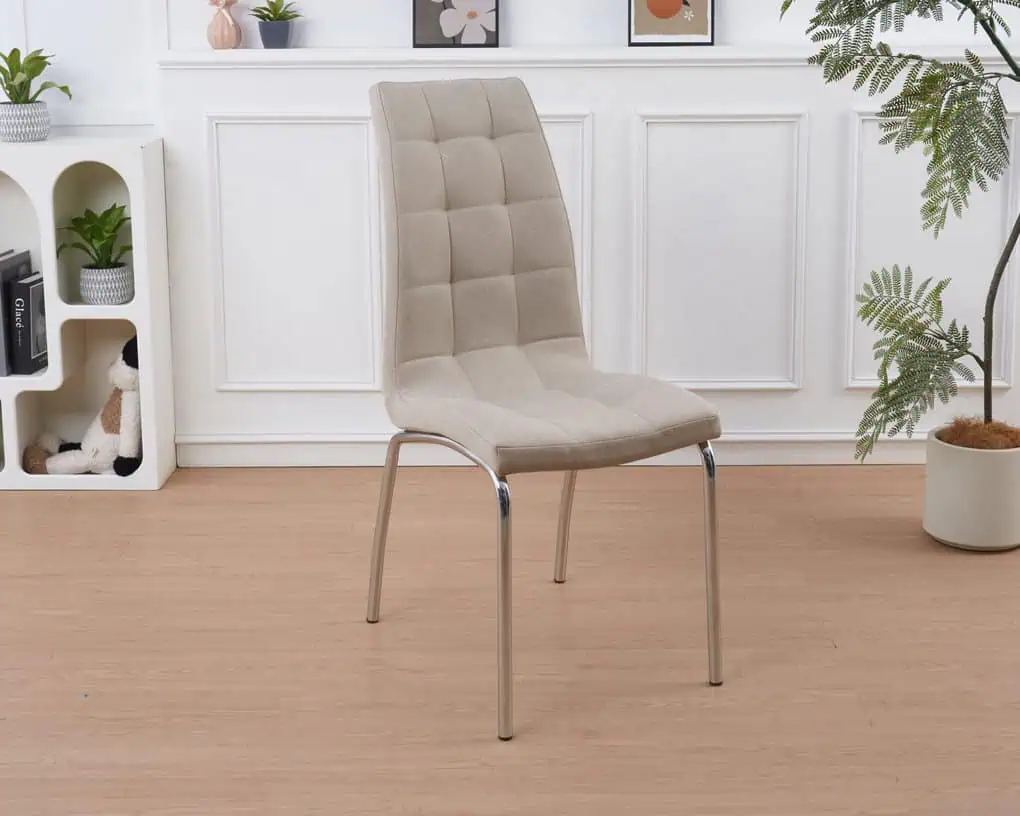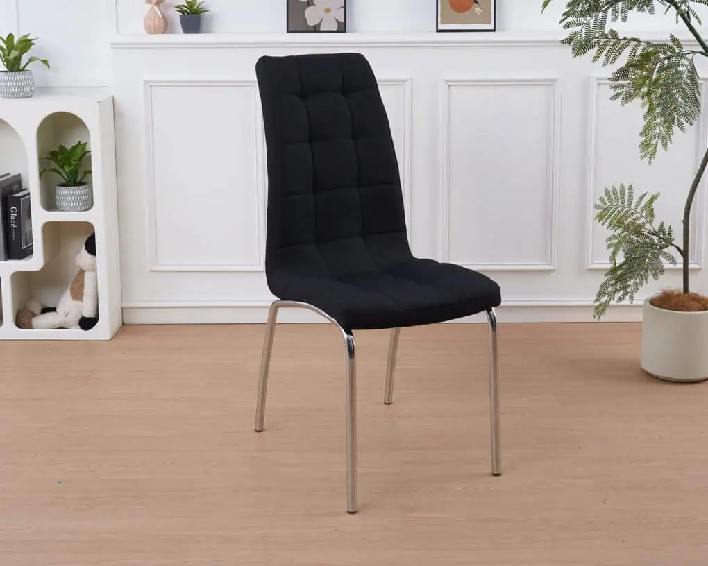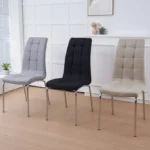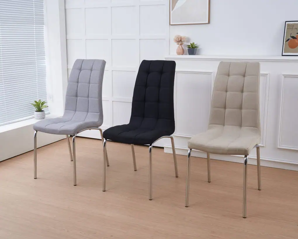Silla de estructura metálica cromada con asiento tapizado en lino y relleno acolchado de primera calidad. \. Medidas 40x42x99 cms. al asiento 46 cm. . Super resistentes. sencilla de armar. incluye lo necesario para hacerlo. Articulo importado de calidad premium.
