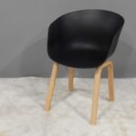 Sillón tulip de pata recta ovalado, asiento de polipropileno de patas metálicas con pintura epoxi simil madera.